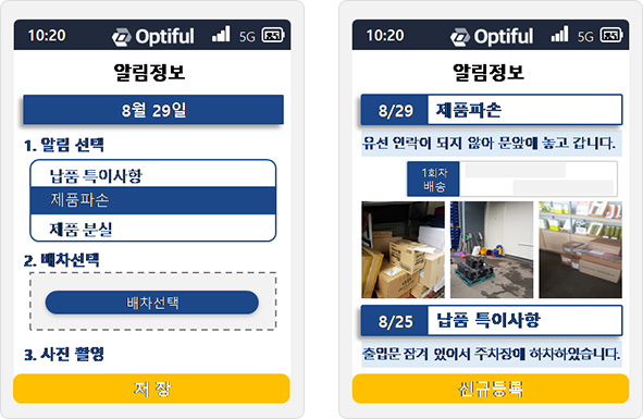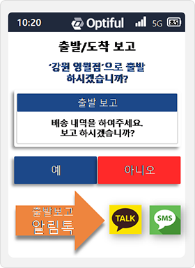 When reporting departure/arrival, a notification message or text message is sent to the delivery destination.