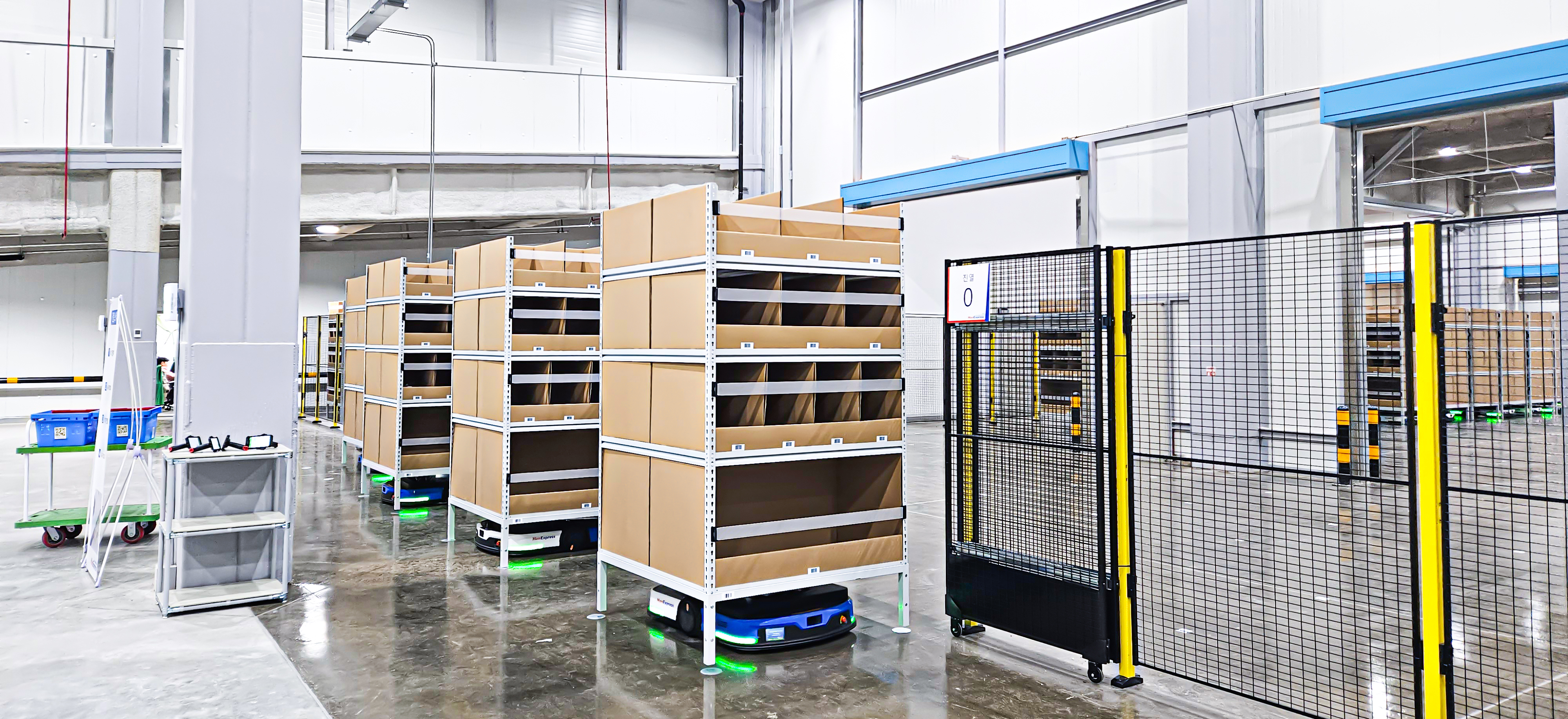 기존 방식과 다르게, 한익스FS 센터에서는 로봇이 사람에게 물건을 전달해 빠른 작업이 가능합니다.