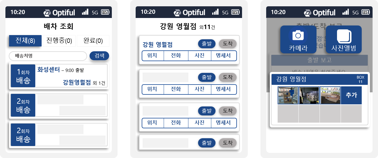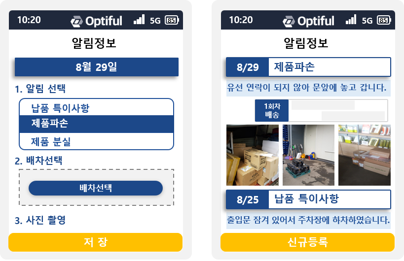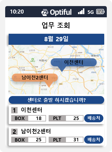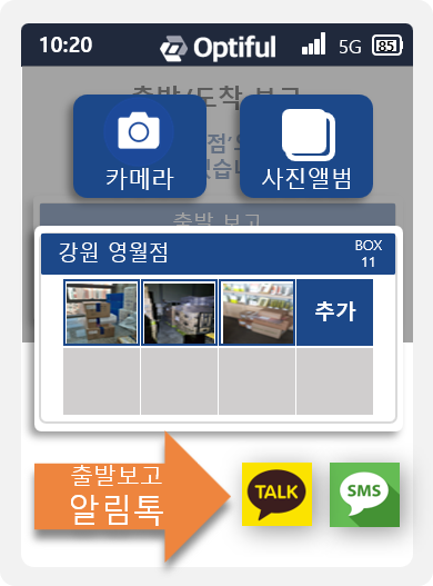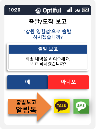 출발/도착 보고 시 배송처에 알림톡 또는 문자발송과