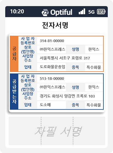 전자서명을 포함한 거래명세서의 시스템 자동등록 및 TMS 열람/관리